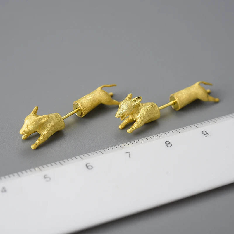 Orecchini a Perno Trendy a Forma di Bassotto, Animali Carini in Ottone Dorato, Rame, Titanio con Zirconi e Perle per Feste e Occasioni Speciali