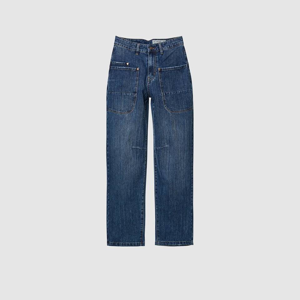 Trendy Dark Blue Cargo Jeans Women High Waisted Balloon Fit Utility Trousers Large Pockets Y2K Streetwear Denim