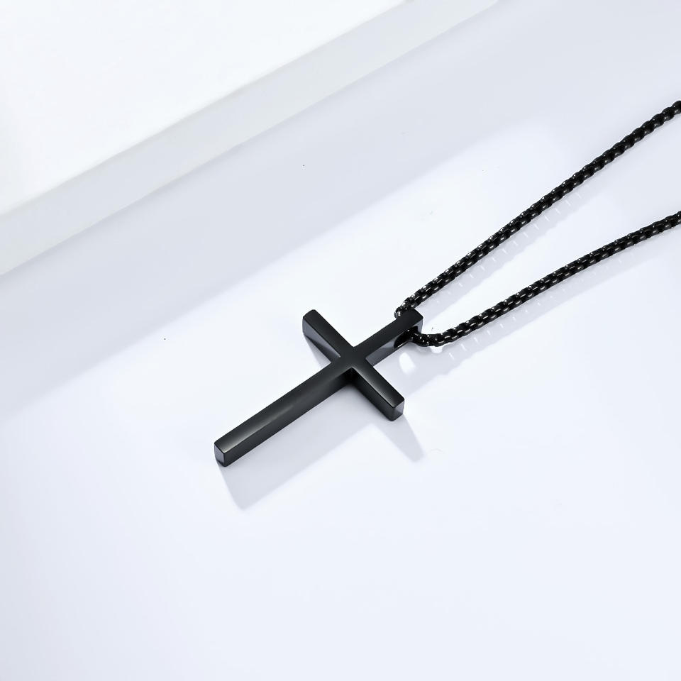 Collana con Ciondolo a Croce Religiosa in Acciaio Inossidabile Placcato Oro, Design Geometrico alla Moda, Lunghezza 60 cm, Unisex, Regalo Eaco
