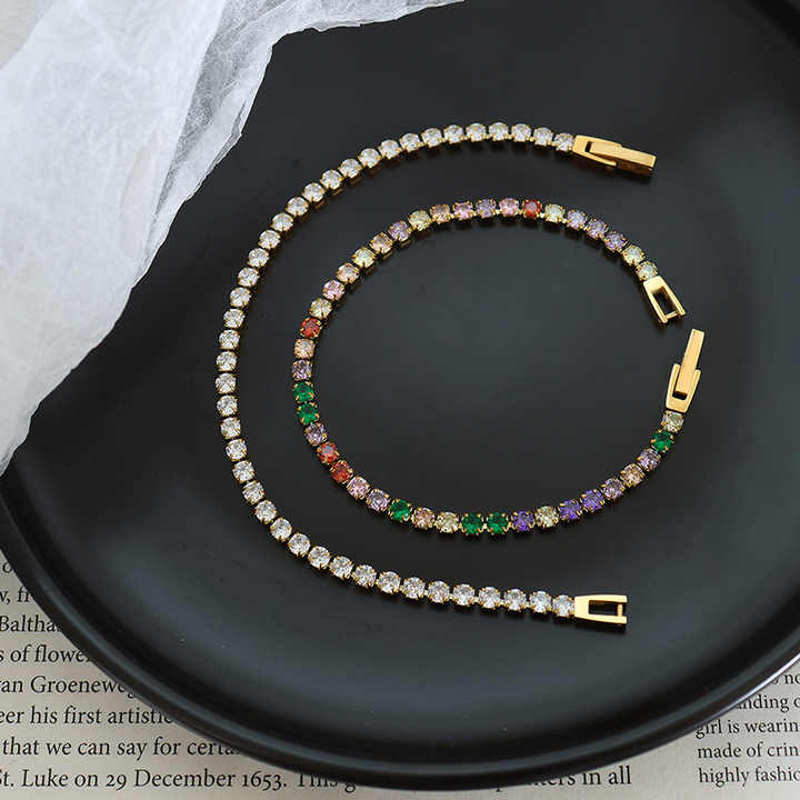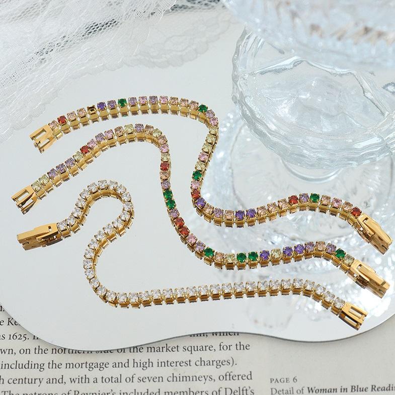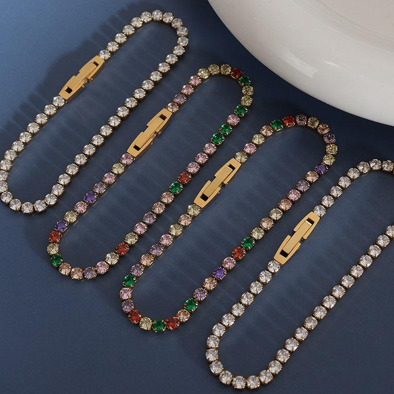 Bracciale a catena tennis in acciaio inossidabile placcato oro con design geometrico di tendenza, set di gioielli classico e popolare con zirconi colorati
