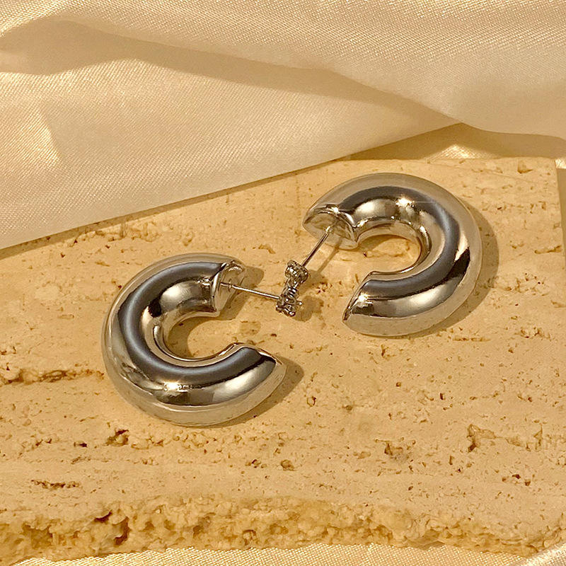 Trendy Gold Plated Huggie Earrings Zinc Alloy Unisex Fashion Jewelry White Gold Color 20mm Size