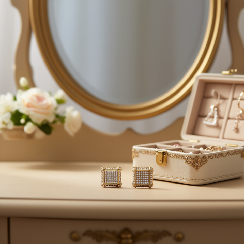 Orecchini a Perno Quadrati Placcati Oro alla Moda con Cristalli e Strass, Design Geometrico per Feste, Gioielli Unisex