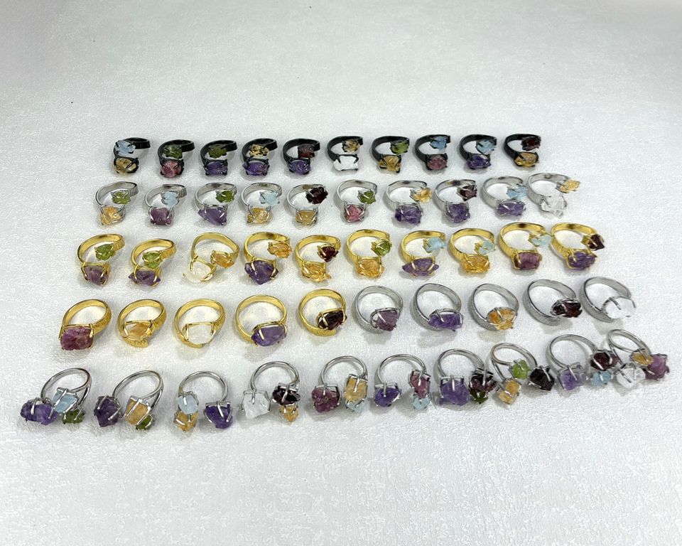 Trendy Jewelry Silver Plated Natural Raw Amethyst Ruby Peridot Aquamarine Adjustable Three Stones Ring for Party Birthday Gift