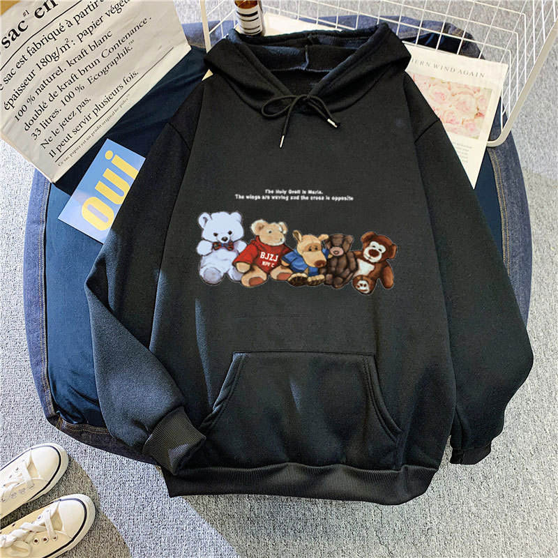 Dettagli della confezione:1 pezzo/donna alla moda stampa con cappuccio felpe con stampa di cartoni animati da donna Casual sport Pullover oversize senza maniche per allenamento Unisex con cappuccio/nella confezione della borsa