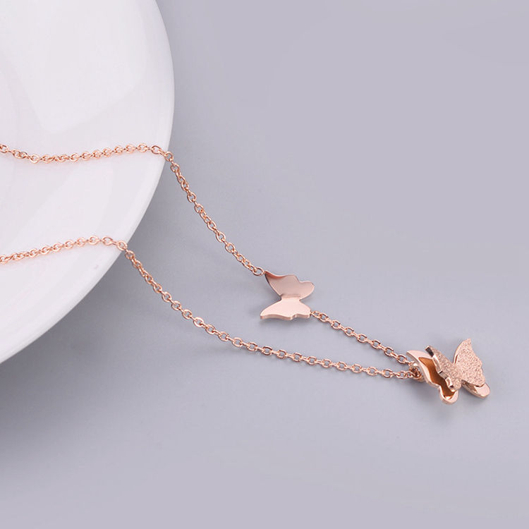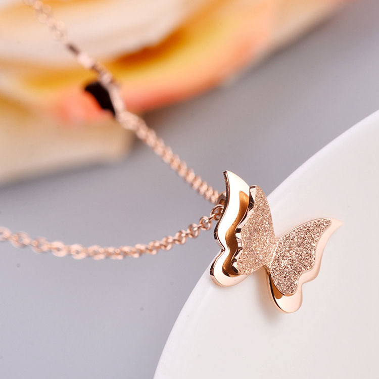 Collana girocollo alla moda in acciaio inossidabile con personalità Hip-Hop in argento con pendente a farfalla a più strati