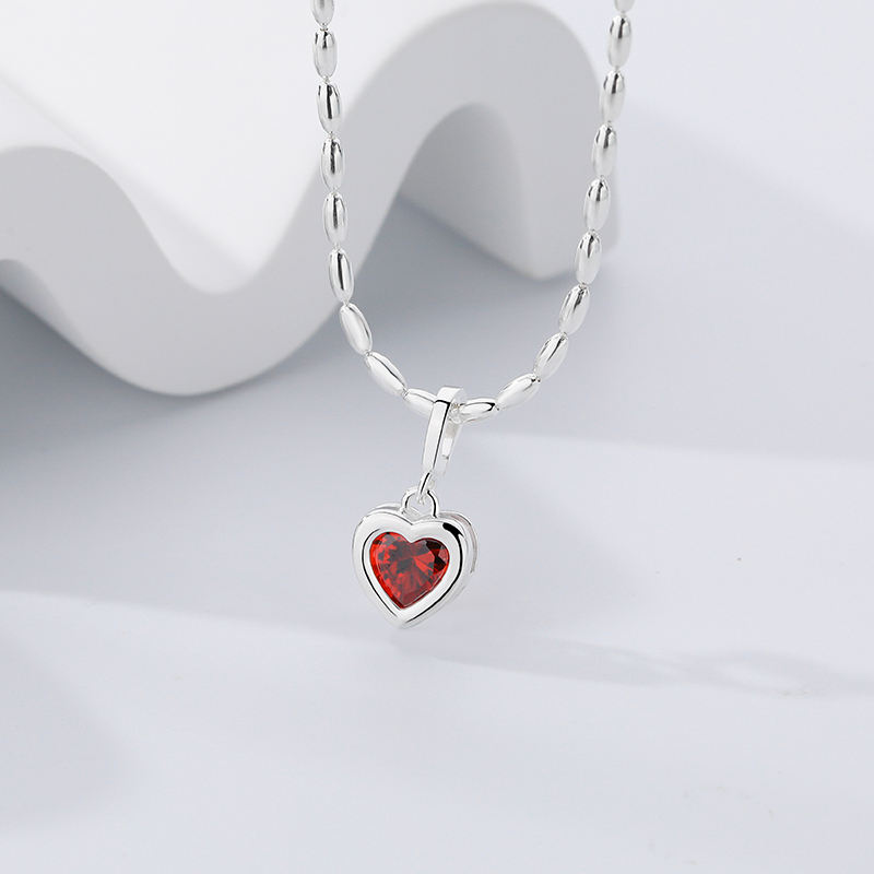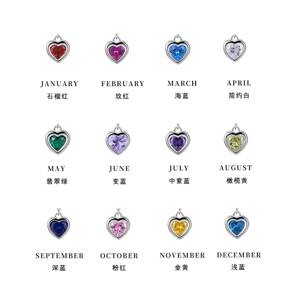 Trendy Necklace Delicate Crystal Charms Jewelry 925 Sterling Silver Love Heart Birth Stone Necklace Pendant Women