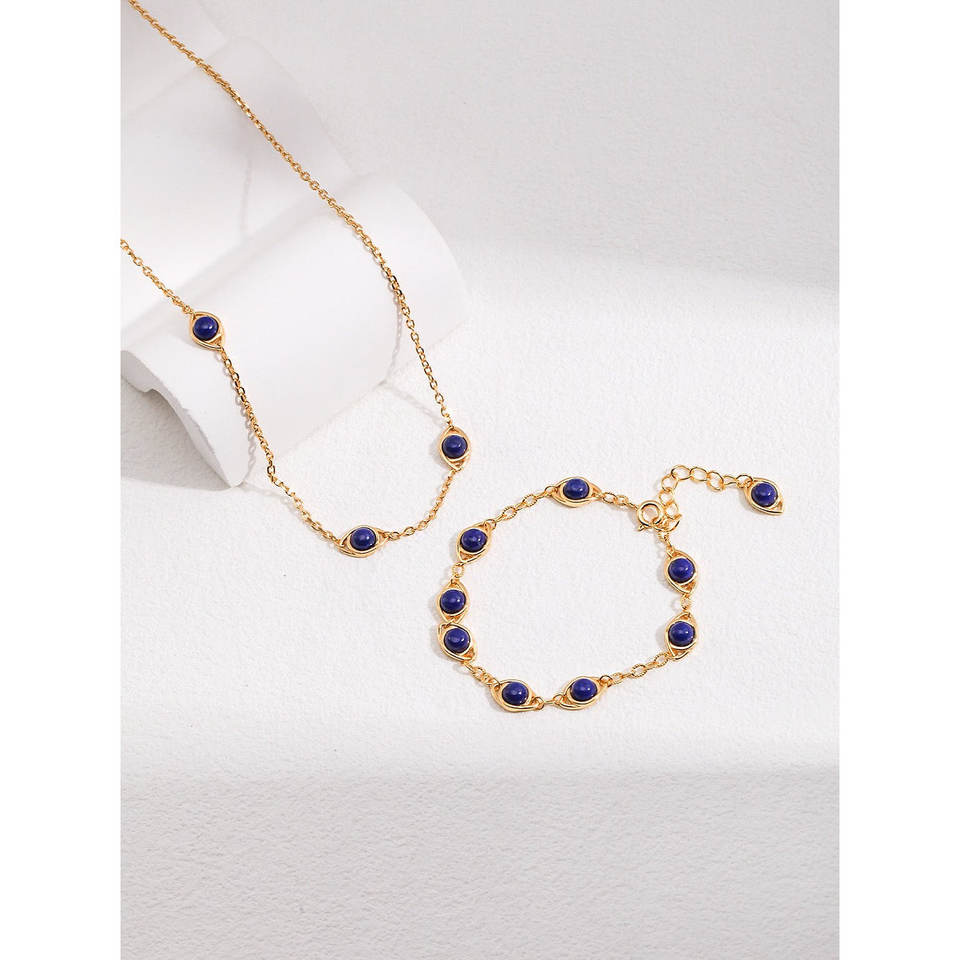 Collana Trendy con Occhio di Tigre e Lapislazzuli, Catena Placcata Oro con Forme Geometriche per Matrimoni o Regali D0363