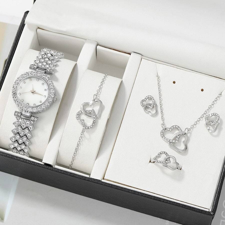 Trendy Roman Love Heart Wedding Jewelry Women's Quartz Watch & Diamond-Encrusted Gold Plated Luxury Ring Set with Gift Box