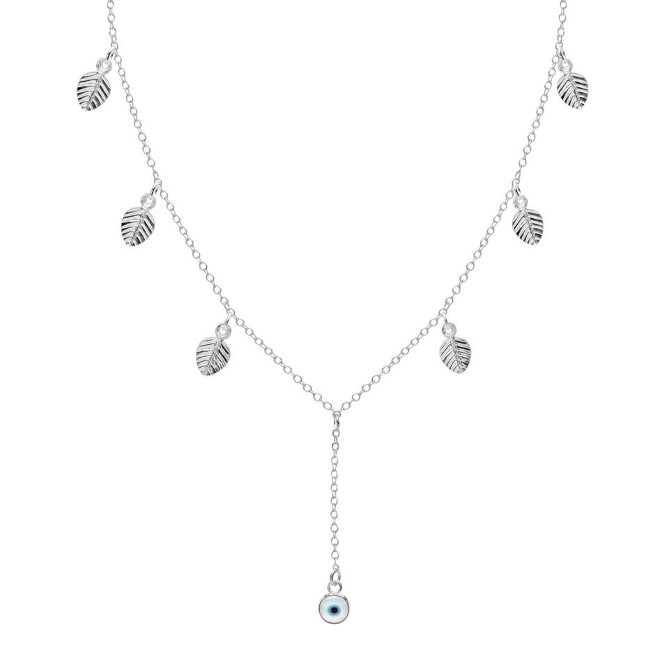 Alla moda girocollo in argento con foglie geometriche malocchio rodio placcato oro in acciaio inossidabile catena a corda con giada pietra principale