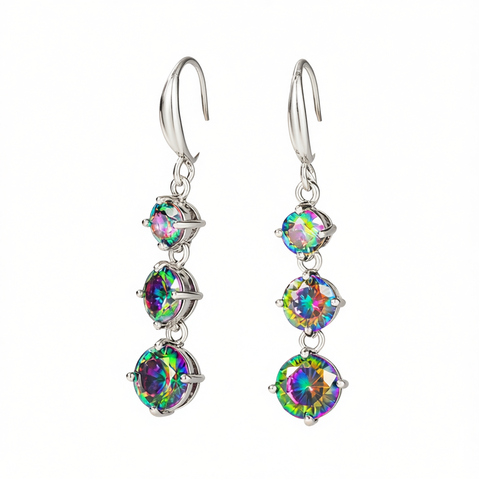 Orecchini pendenti alla moda placcati in argento con strass rotondi colorati e montatura a griffe per gioielli da festa da donna