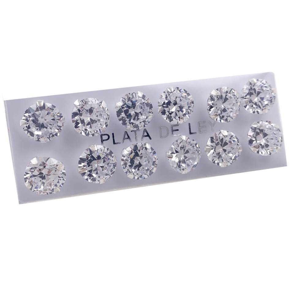 Set di 6 Paia di Orecchini a Perno in Argento Sterling 925, Zirconia Cubica Brillante Taglio Rotondo 9 mm, Gioielli Ipoallergenici Unisex, Idea Regalo