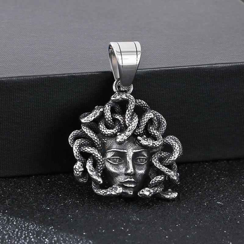 Trendy Stainless Steel Medusa Head Pendant Necklace with Detailed Snake Design for Men and Women Hip Hop Gothic Jewelry