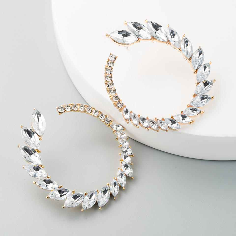 Gioielli di moda di tendenza luccicanti orecchini a cerchio di strass per le donne grandi eleganti cristallo di lusso placcato in lega di zinco