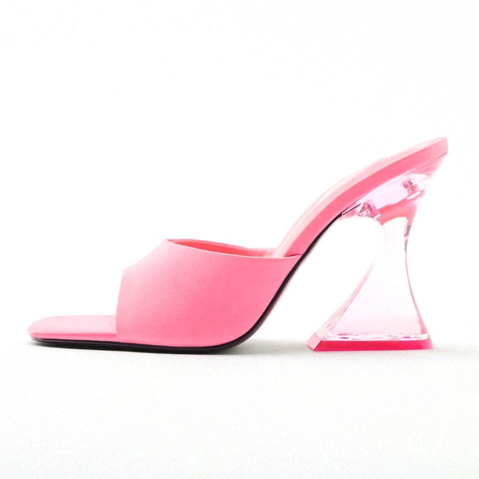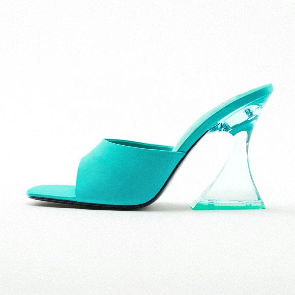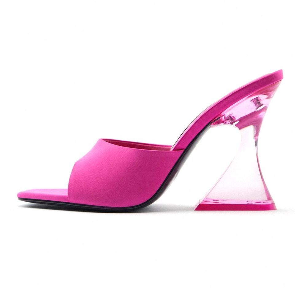 Product name:Trendy Glass Heel Slippers Square Toe Beautiful Female High Heels