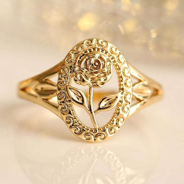 Gold Rose Flower Copper Ring For Women