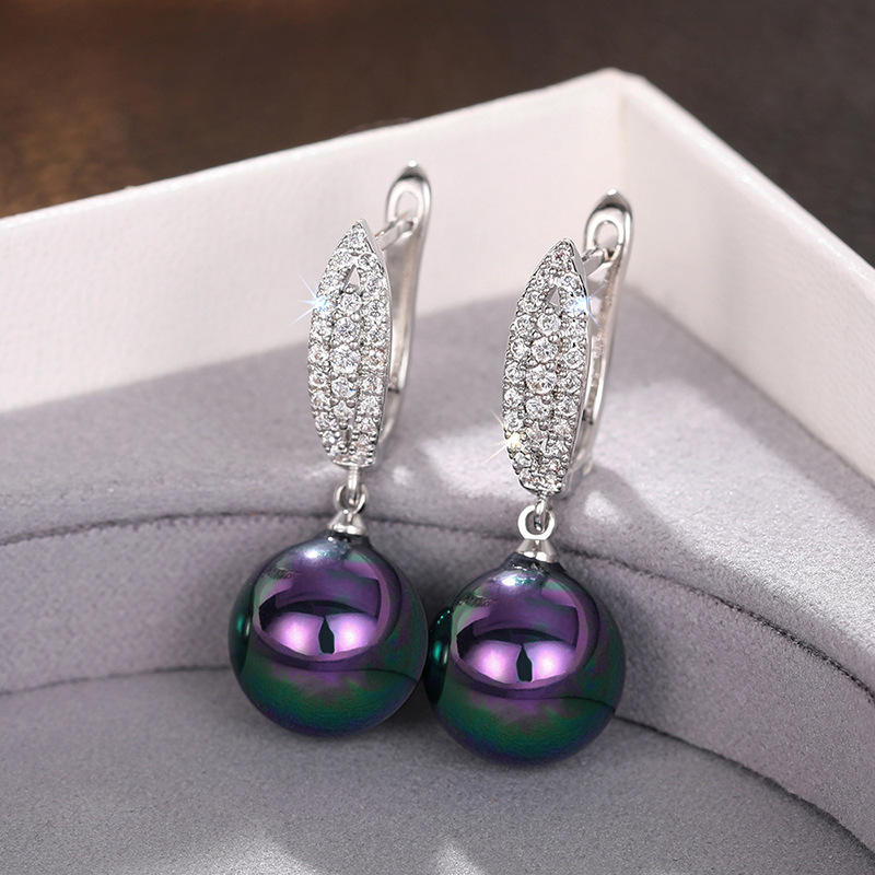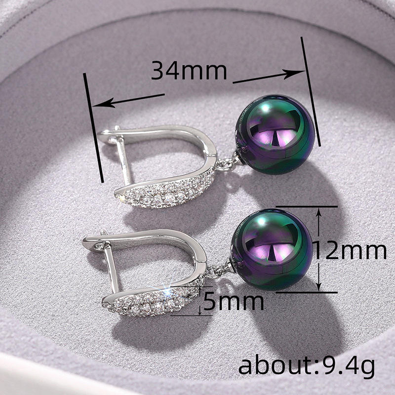 Trendy Women's Drop Earrings White Gold Plated Imitation Pearl Ball Rhodium Plated Micro Insert Round Brilliant Cut Party