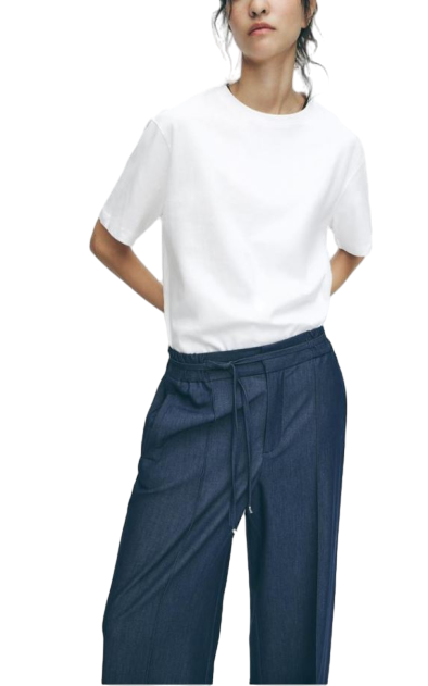 Trendy Womens Cotton Blue Loose Trousers Elegant Office and Business Wear Bottoms Available at Affordable Wholesale Prices