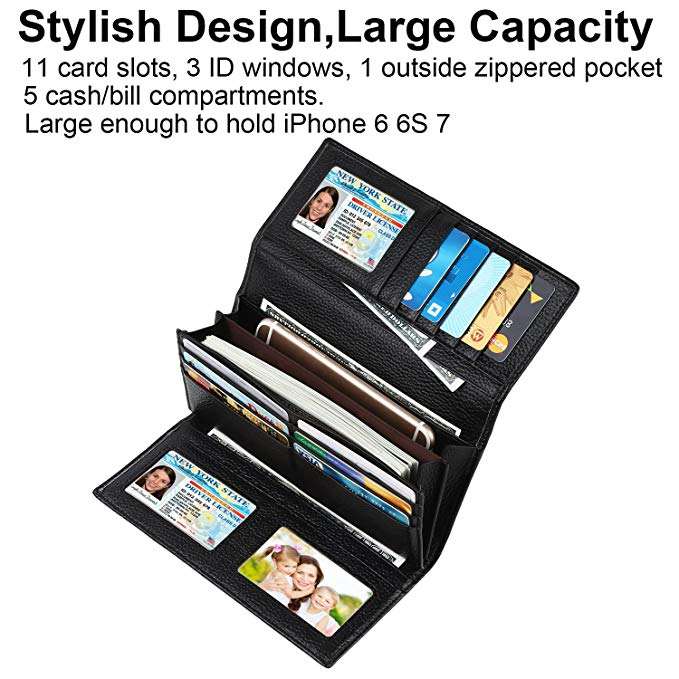Trifold Ladies Luxury Leather Clutch Travel Purse Womens RFID Blocking Long Wallet