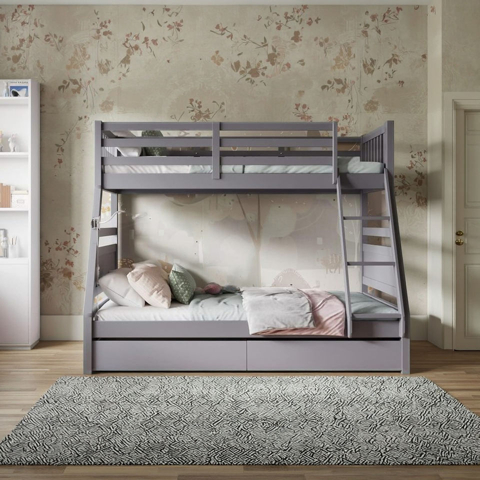 Triplo letto a castello in legno di pino letto a castello con cassetti portaoggetti per bambini resistente e durevole eco-friendly moderno accogliente salvaspazio