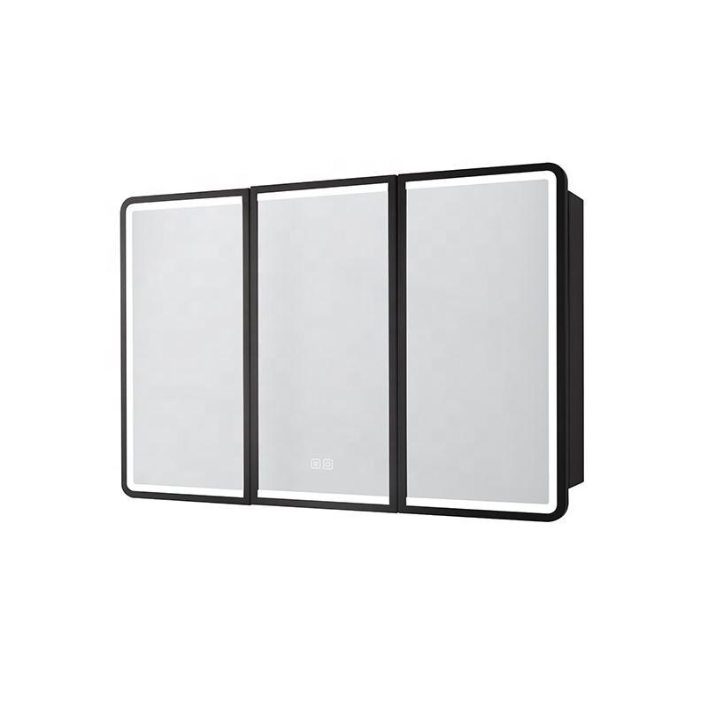 Triple Door Mirror Cabinet with LED Lights LED Dimmable Medicine Cabinet Cabinet for Hotel Bathroom Factory New Design