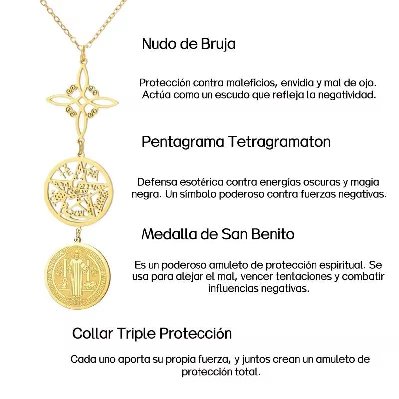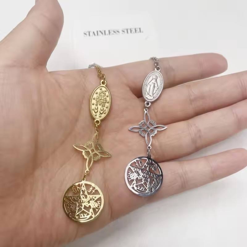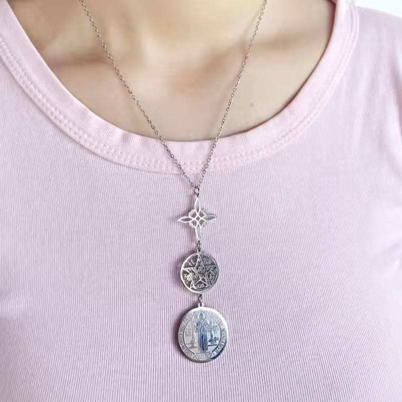 Triple Protection Pendant Necklace Witch Knot Pentagram Tetragrammaton St. Benedict Stainless Steel Spiritual Amulet Jewelry