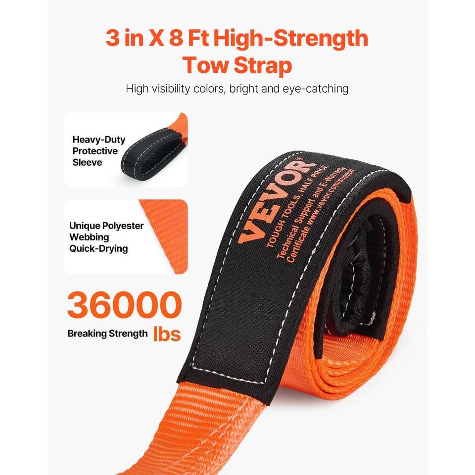 Cinghia di Recupero Rinforzata Tripla da 3 Pollici e 8 Piedi, Resistenza al Rottura 36.000 Libbre, Protezione Alberi, Estensione Cavo Verricello, Fibbie a Cricchetto