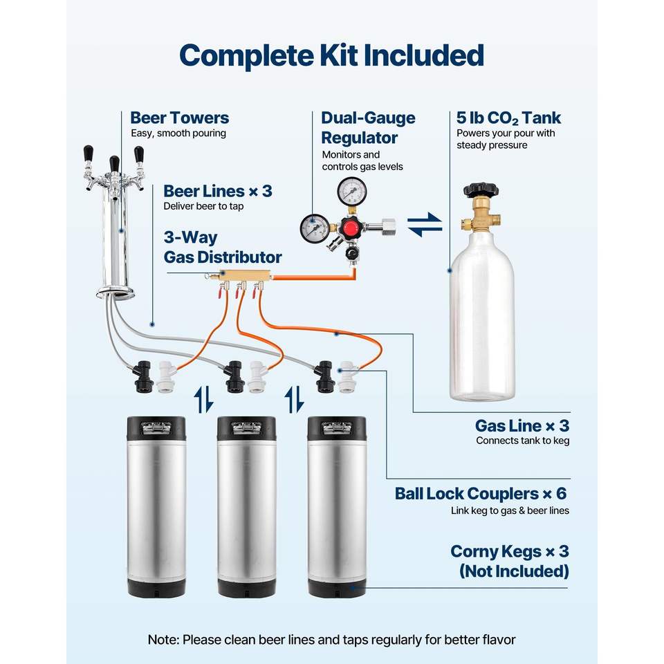 Dispenser Birra Artigianale a Triplo Rubinetto per Casa, con Serbatoio CO2 da 5 libbre e 2 Porta Sfere da 6 Pollici per un Servizio Conveniente