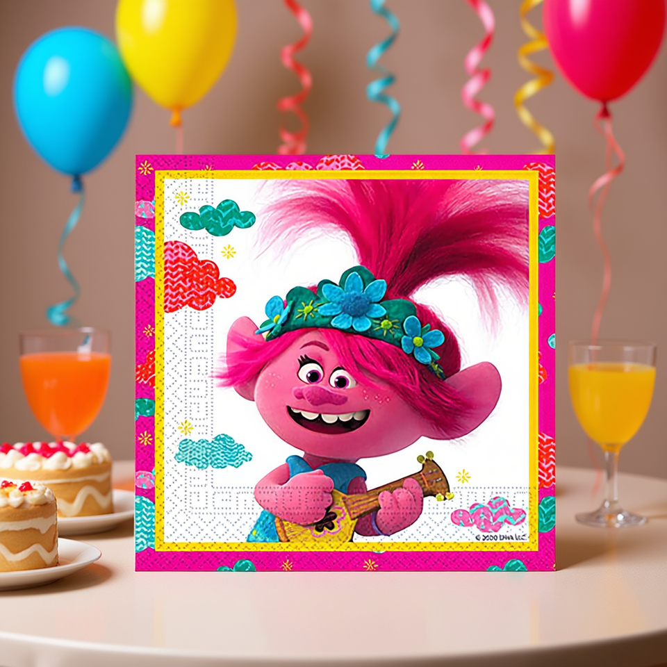 Tovaglioli di Carta Quadrati con Personaggi dei Trolls 33x33cm 20 Pezzi/Confezione Ecologici per Celebrazioni