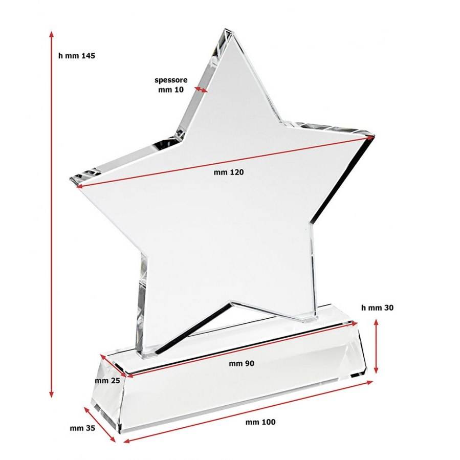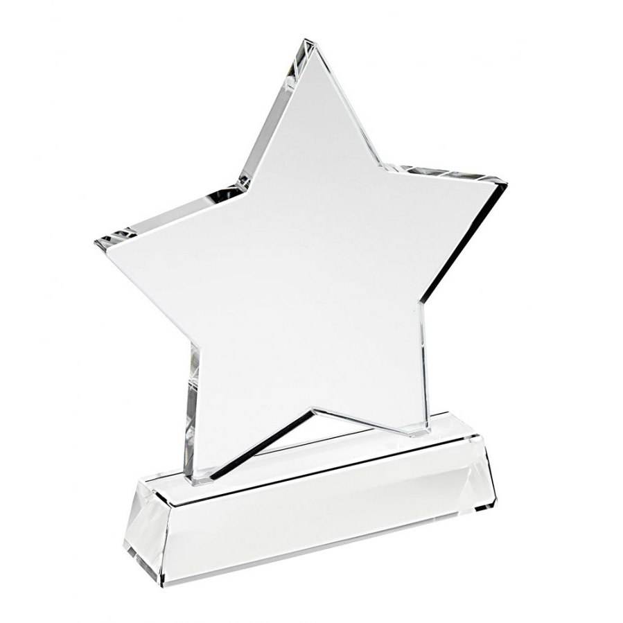 Trophy Star of Glass Mm120 H 30 Base Crystal and Paper Medal Plaque UV Printed Graphics for Trade Shows and Welcomes