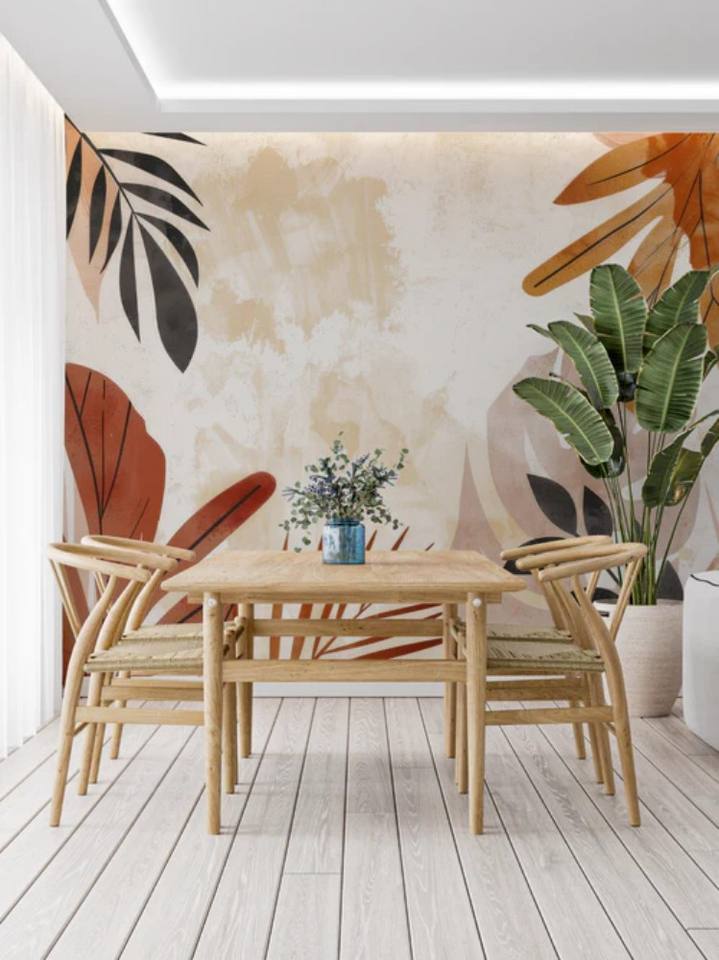 Carta da Parati Murale con Foglie Tropicali, Stampa Botanica ad Acquerello su Misura per Camera da Letto e Soggiorno, Decorazione Casa, Resistente al Fuoco B1