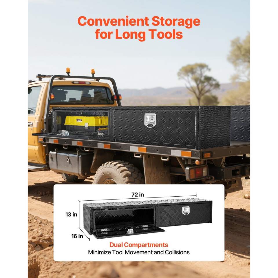 Cassetta Portautensili per Camion, Resistente, 72 x 13 x 16 Pollici, in Alluminio Nero con Doppia Porta a Ribalta, Chiudibile a Chiave, di Topsider