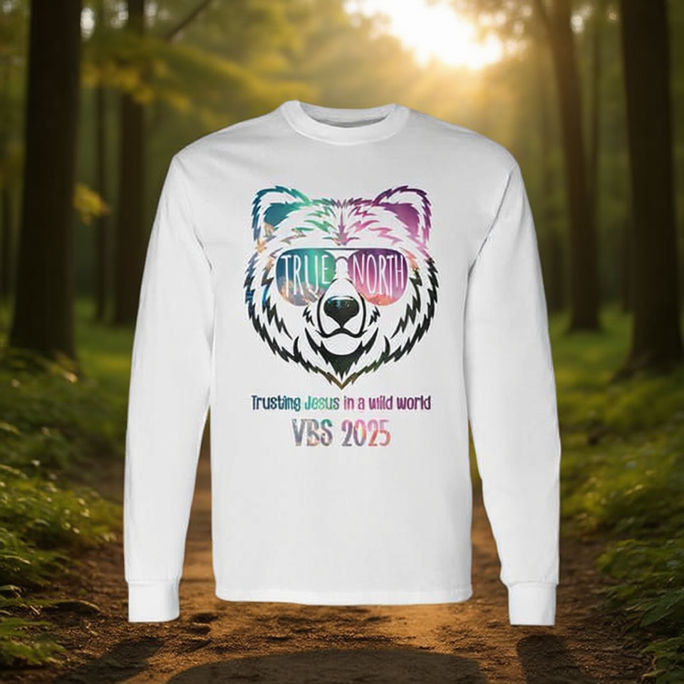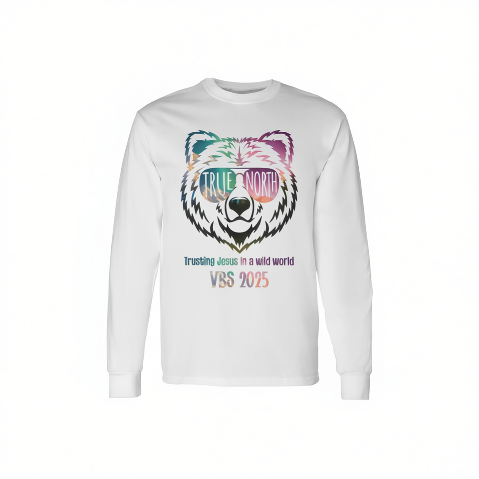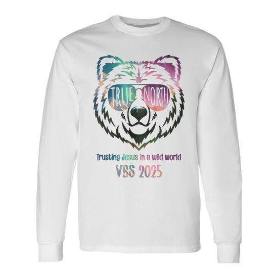 Maglietta a maniche lunghe True North Vbs 2025: fidandosi di Gesù in un mondo selvaggio