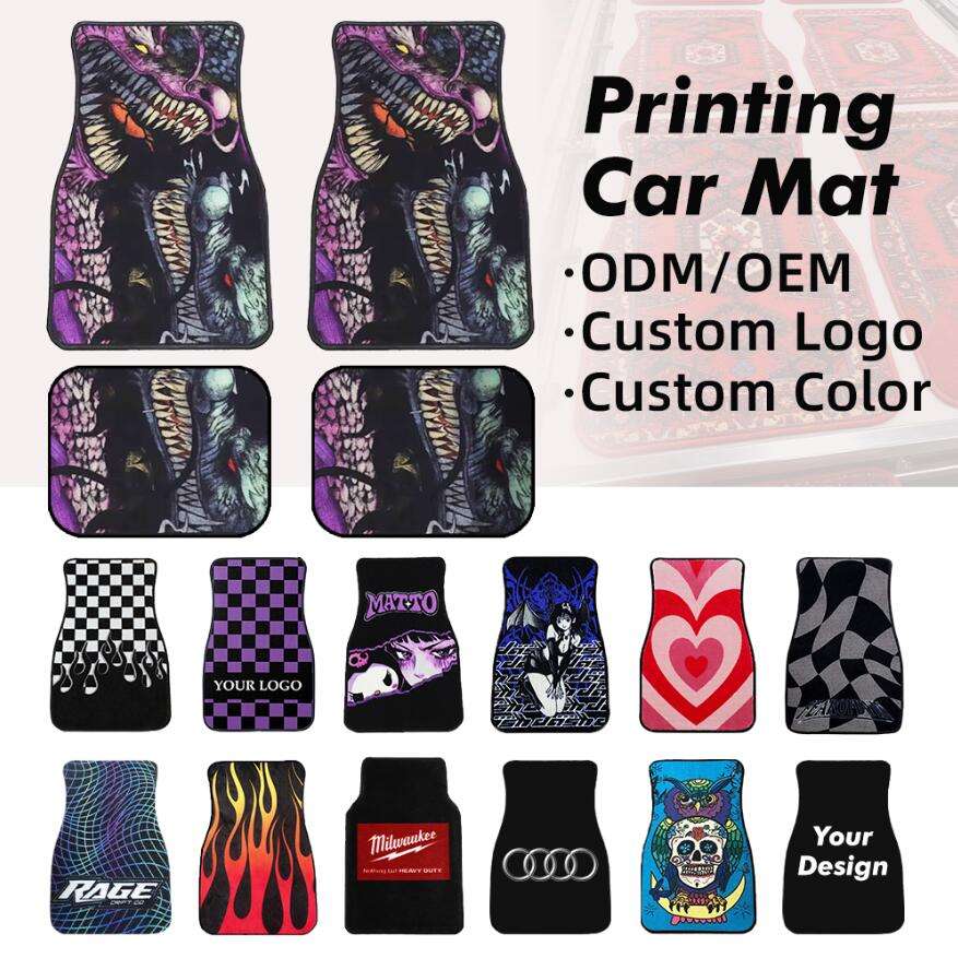 Trunk Branded 4 Pieces Car Rug Mats Printed Polyester Universal Carpet Rubber Wholesale Custom Car Floor Mat With Logo