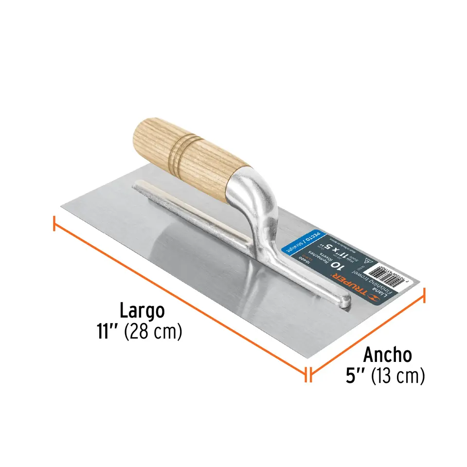 BOX 6 Trowel 11' con bordo dritto, 10 rivetti, manico in legno, TRUPER