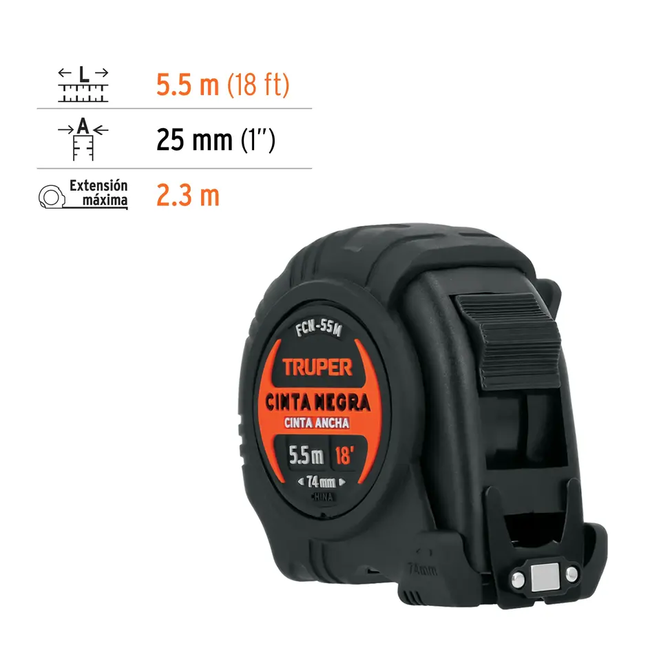 Truper 25mm Black Impact-Resistant Tape Measure Box Set of 6 Units 5.5m Length