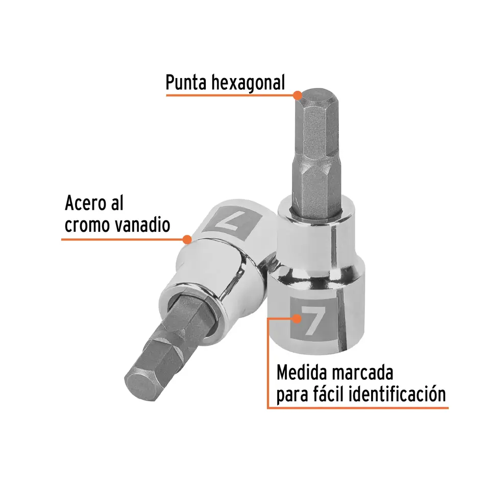Set di 6 Chiavi a Bussola Esagonali da 7mm, Attacco da 3/8", TRUPER