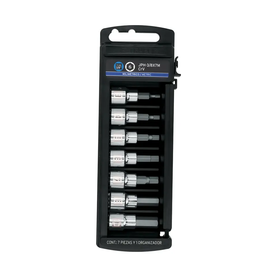 BOX 4 Set di 7 bussole, attacco da 3/8'', punta esagonale, mm, TRUPER