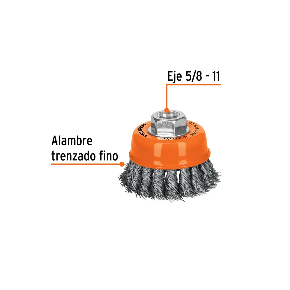 BOX 4 Carding Cup 3' Fine Braided Wire, 5/8'-11 Shaft, TRUPER