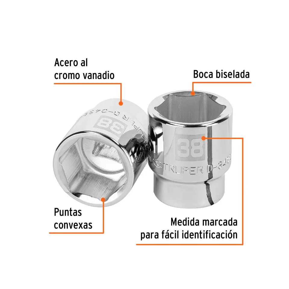 BOX 3 Chiave a bussola da 38 mm, 6 punte, attacco da 3/4 di pollice, TRUPER