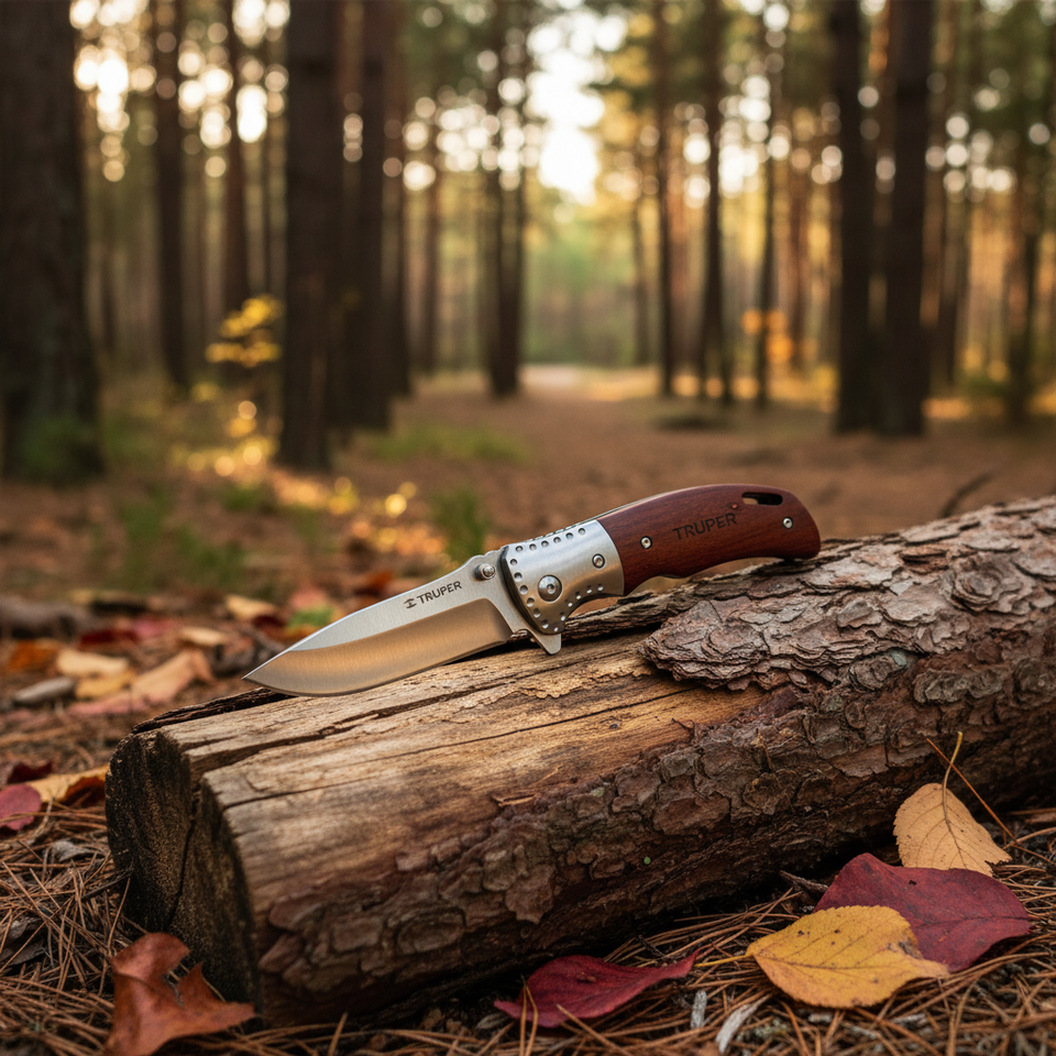 Coltello da Caccia Pieghevole TRUPER di Grado Industriale in Acciaio Inossidabile, Lama 4-1/2", Manico in Legno, Confezione da 3