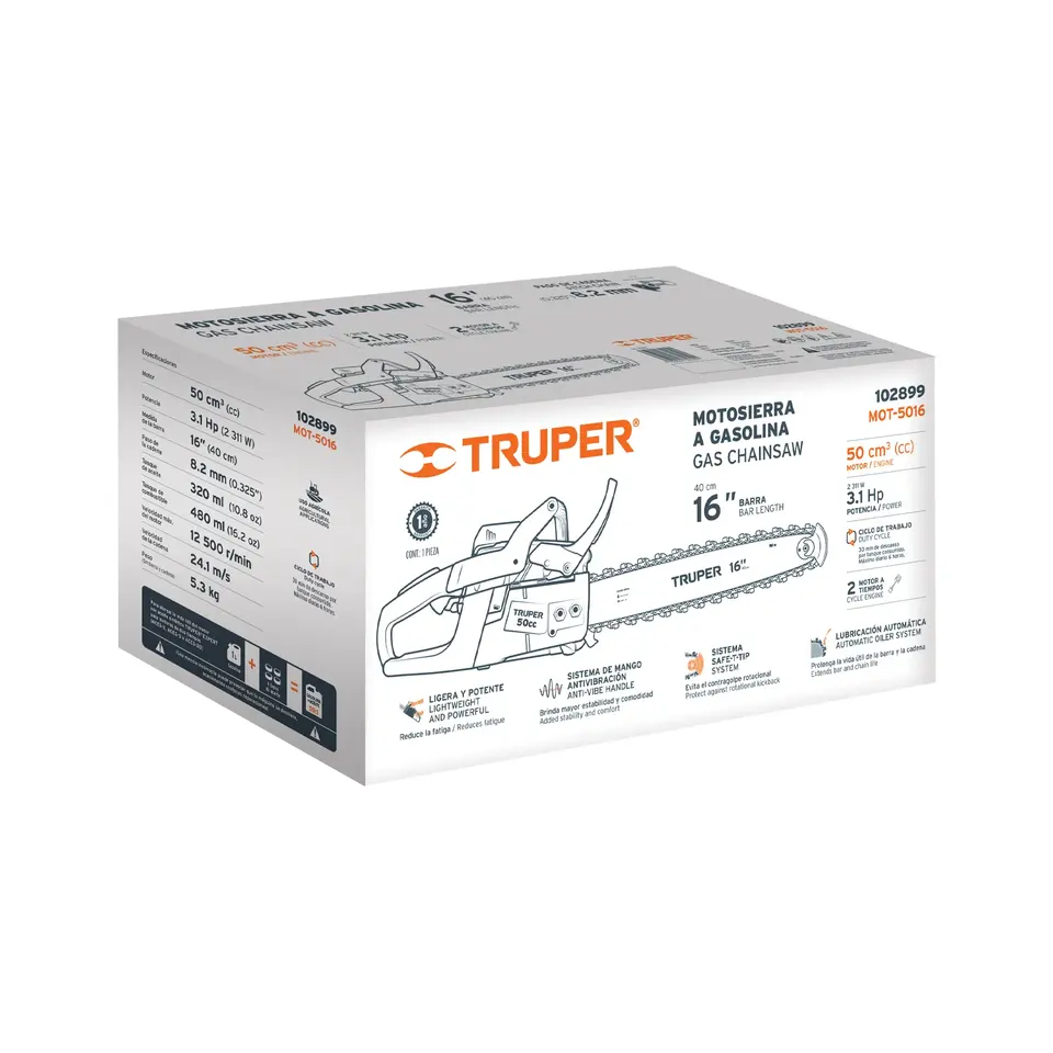 Motosega a Benzina Truper 50cc con Barra da 16' (40 cm), Motore a 2 Tempi, Grado Industriale/DIY, Barra Guida da 12 Pollici, Personalizzabile OEM MOT-5016
