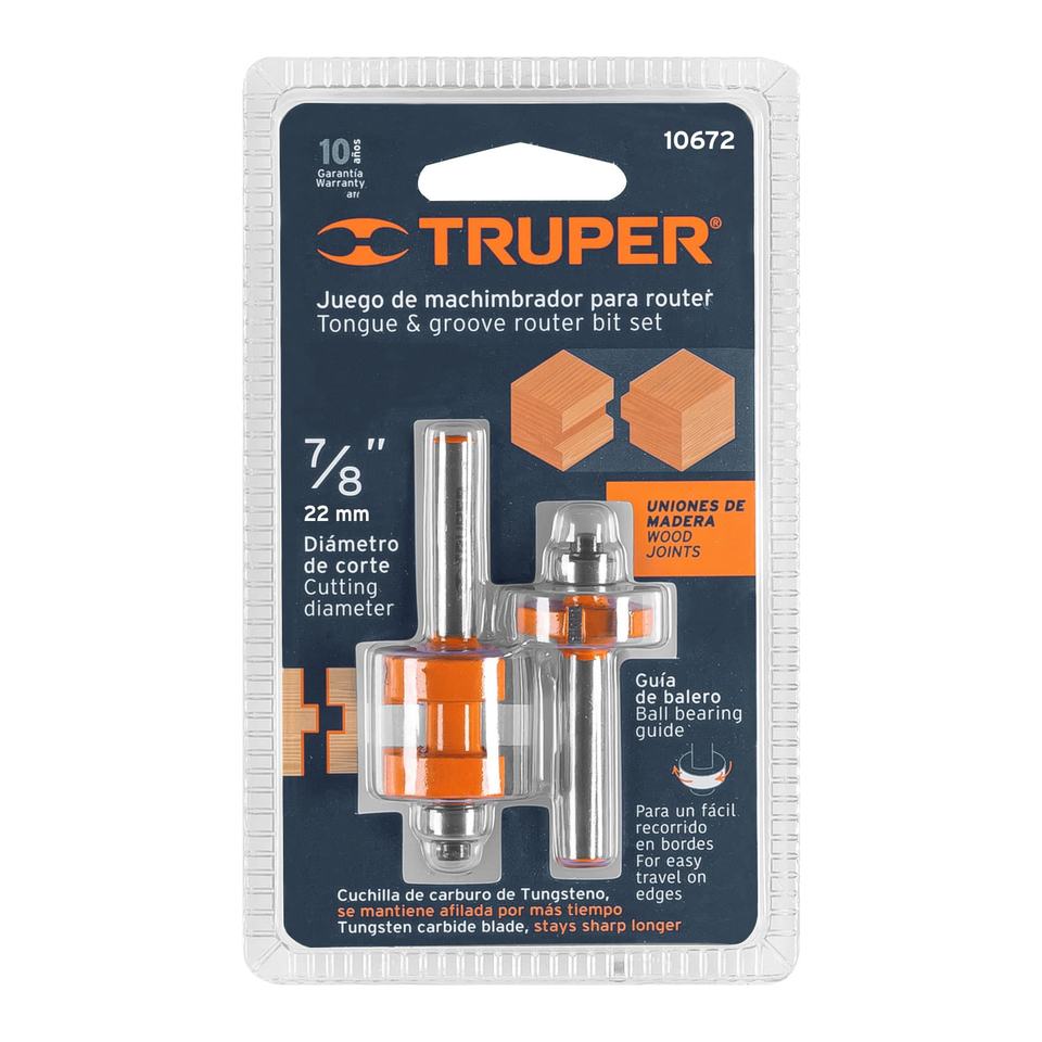 BROU-MACH7 per Truper/8X punte per Router solide 7/8 \ "Set di giunti con maschio e femmina con cuscinetto