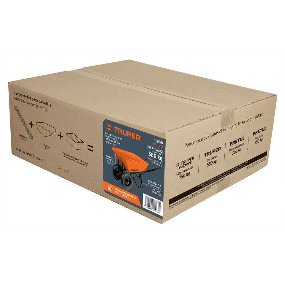 Truper CAR-82 8 Ft³ American Steel Wheelbarrow Double Pneumatic Tires for Construction Garden Industrial Use Metal Plastic