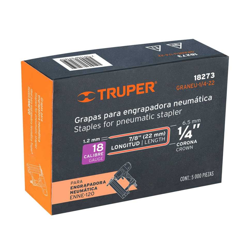 Truper GRANEU-1/4-22 scatola 5000 1/4 'corona graffette in acciaio 18 Gauge 22mm per ENNE-120 per l'applicazione di mobili