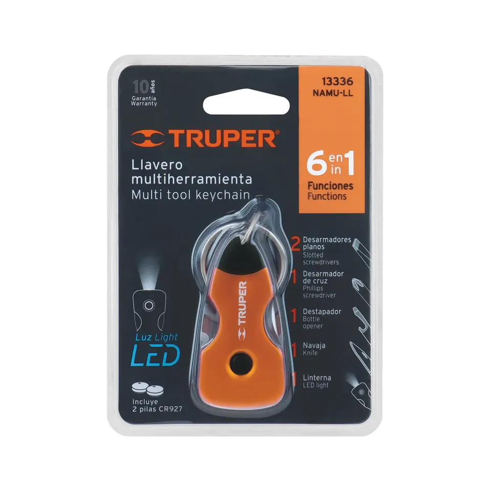 Truper portachiavi Multi-utensile con LED a 6 funzioni tascabile in acciaio inox chiave chiave per lima chiave apribottiglie incluso