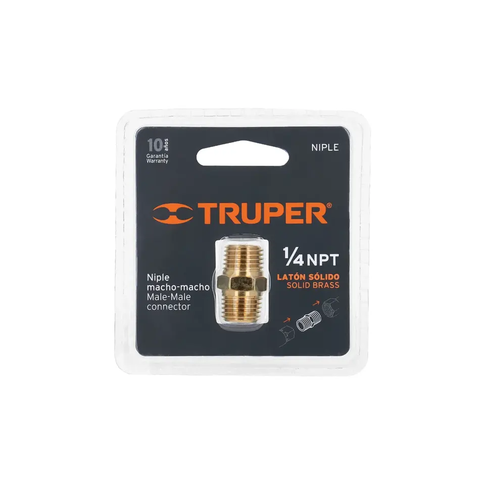 Truper Machined Brass Nipple Male-Male 1/4' NPT Thread High Pressure Connectors for Plumbing Cooling Water Application Head