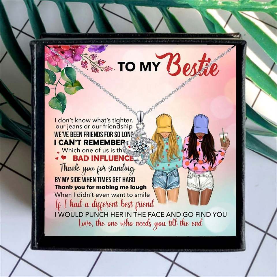 Tryme Gift to My Bestie Forever Star Rhinestone Silver Four-Leaf Clover Pendant Necklace for Friend Women Girl
