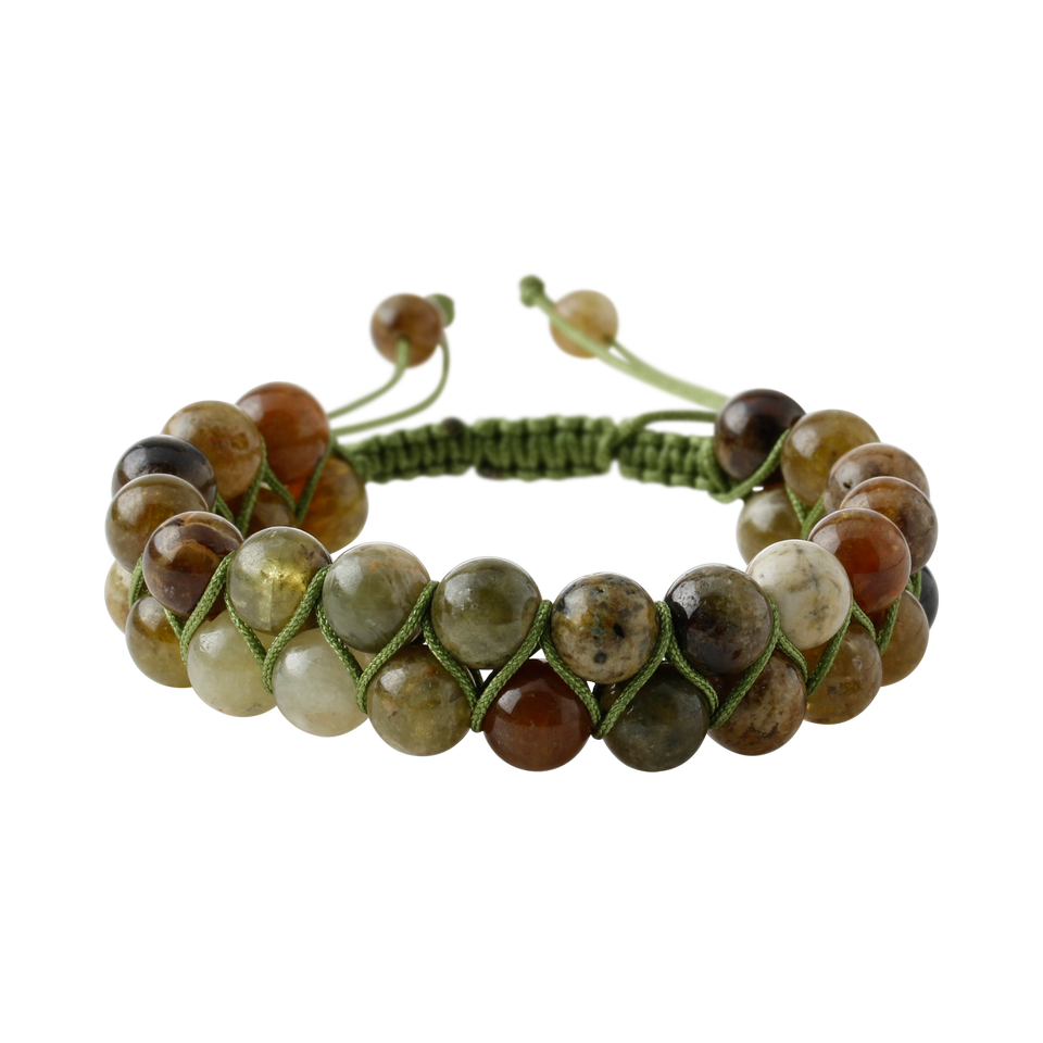 Bracciale in Pietra Naturale Tsavorite Garnet 8mm a Doppia Fila con Macramè