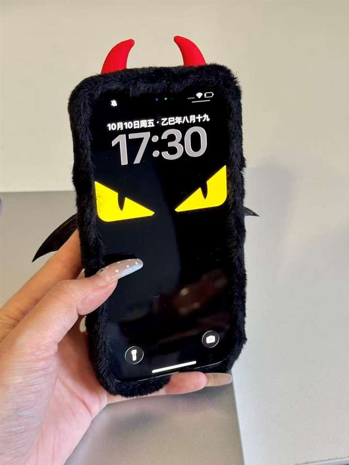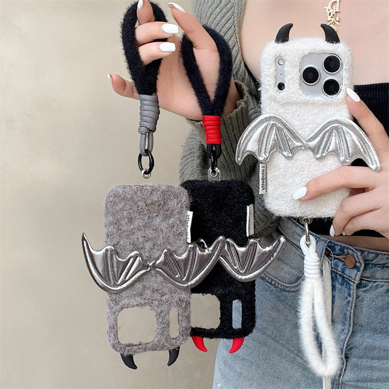 Cover Protettiva Antiurto Completa con Corna di Diavolo in Peluche e Corda per Apple 17promax 16pro 15 14