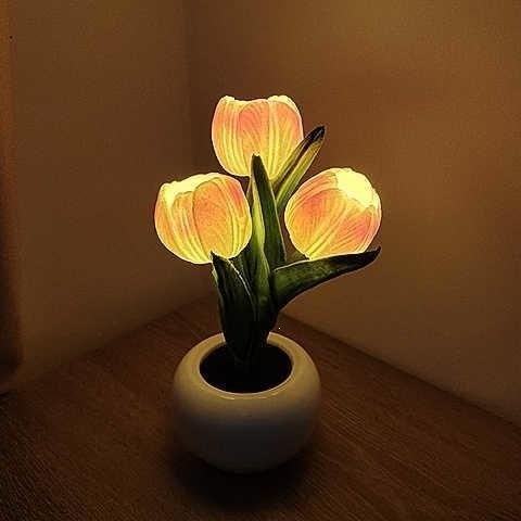 Lampada da Notte LED a Forma di Tulipano, Luce Decorativa da Comodino per Camera da Letto, Lampada da Tavolo Creativa, Regalo di Compleanno di Alta Gamma per Donne